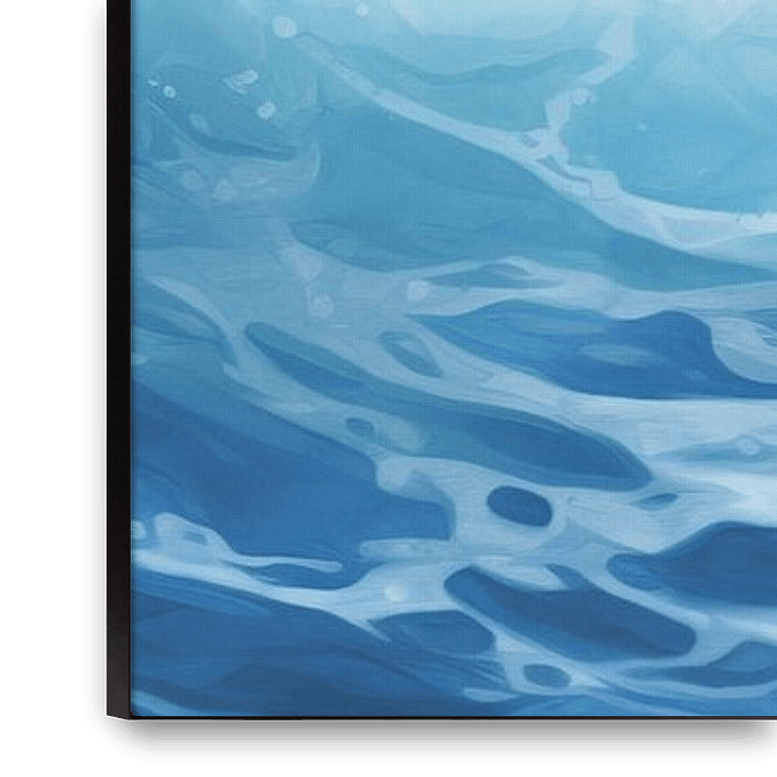 Danse des vagues - Cette peinture détaillée montre une mer dynamique avec des vagues qui se gonflent et des têtes d'écume qui captent la lumière, créant un sentiment de mouvement et d'espace. Les tons froids de bleu dominent la palette de couleurs, allant du bleu marine profond au bleu ciel doux, créant un effet à la fois apaisant et puissant. Le réalisme de l'eau, combiné à la puissance de la composition, en fait une représentation puissante de l'océan.