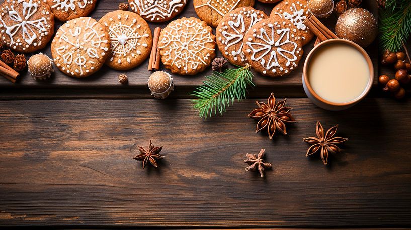 Décoration de Noël avec de la cannelle et des biscuits sur une table en bois par Animaflora PicsStock