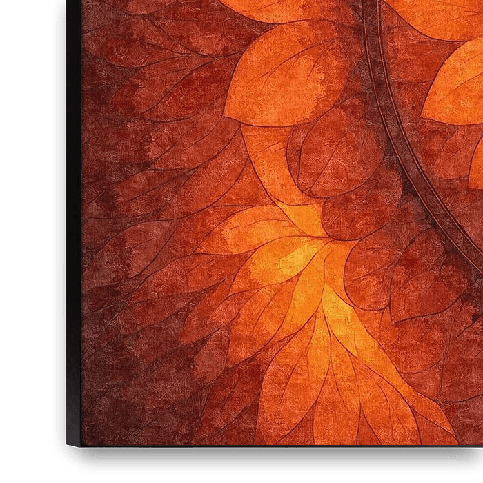 Ce mandala artistique se déploie comme un cœur de verre incandescent : couche après couche, des tons chauds d'orange, d'or et de rouge rubis rayonnent dans une symétrie parfaite. La fleur centrale agit comme une pulsation intérieure - un rythme silencieux de nostalgie et d'harmonie.