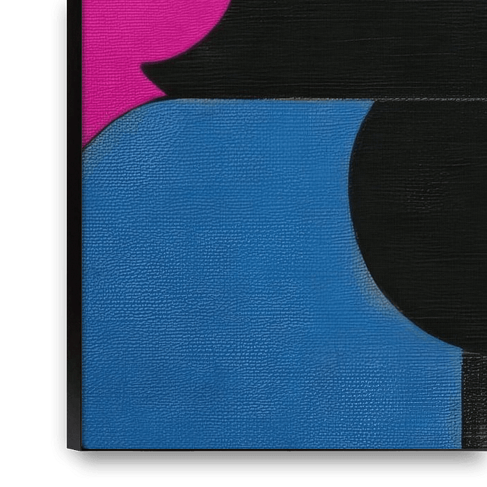 Geometric Woman | Modern Art Female Portrait - Il s'agit d'un portrait de femme moderne avec des formes géométriques nettes représentant le visage d'une femme dans des tons de rose et de bleu, les yeux vifs et les lèvres roses se détachant nettement sur l'arrière-plan abstrait.