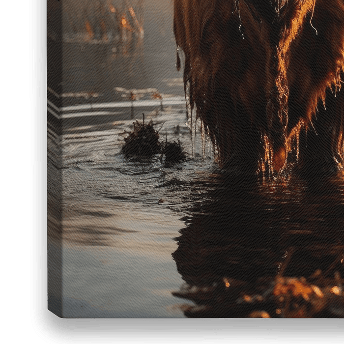 À propos de ‘Heure d'or Highlander écossais dans l'eau’ par Digitale Schilderijen