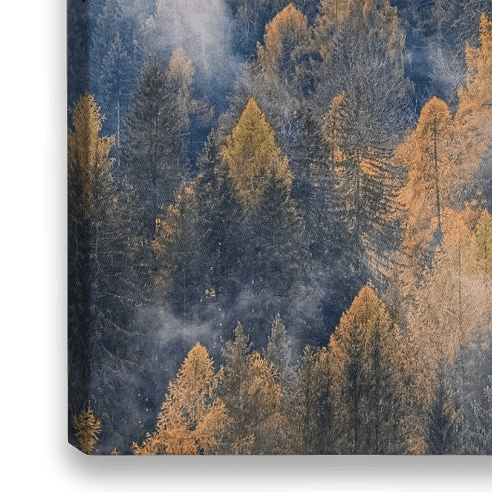 Des nuages bas et du brouillard s'accrochent aux montagnes et aux forêts aux couleurs d'automne d'octobre entre Cortina d'Ampezzo et San Vito di Cadore, dans la province italienne de Belluno, dans les Dolomites, en Italie.
