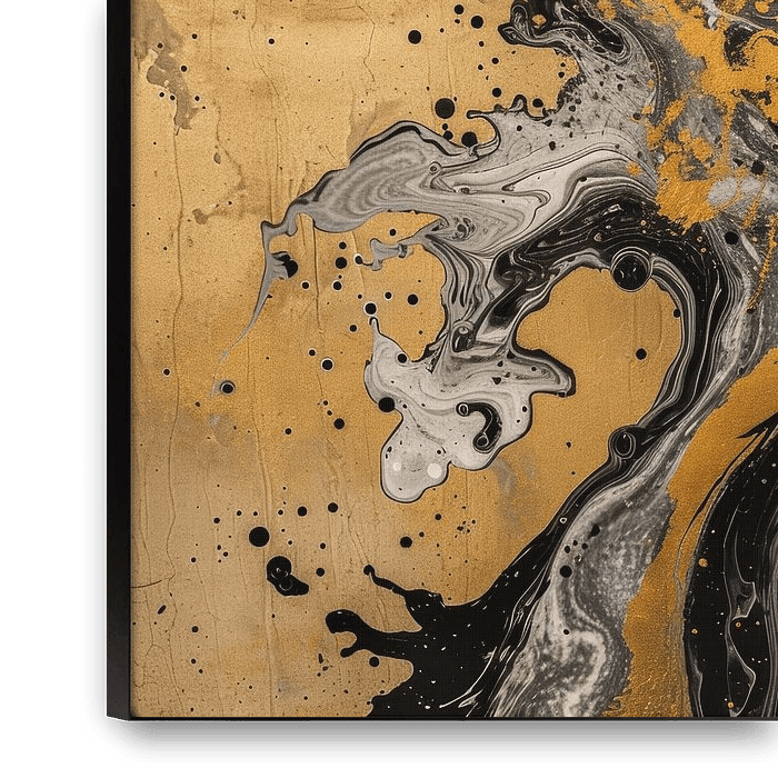 Achetez cette œuvre d'art abstraite L'esprit de la splendeur abstraite dans un jeu harmonieux d'or, de noir et de blanc par Digitale Schilderijen sur toile, aluminium, ArtFrame ou photographie (encadrée), impression d'art en haute qualité et tout format.
