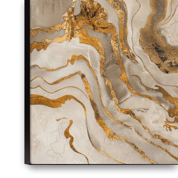 Les lignes beiges jouent avec l'or de l'œuvre d'art abstraite