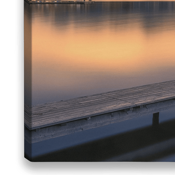 Photo carrée 1:1 avec une exposition de 150 secondes d'un lever de soleil au lac Hopfensee à Hopfen am See, Bavière, Allemagne.