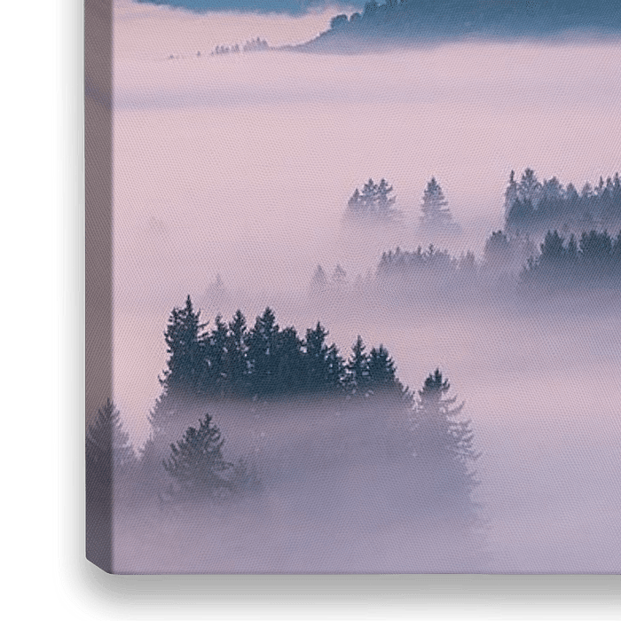 La brume matinale dérive doucement dans la vallée tandis que la première lumière chaude de l'aube colore le ciel de nuances de rose, d'orange et d'or. Au loin, les silhouettes des montagnes bavaroises s'élèvent…