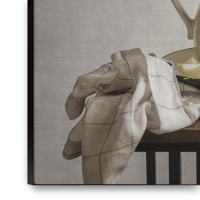 La nature morte elle-même a un air médiéval, mais les tons gris frais en font un art moderne et contemporain.