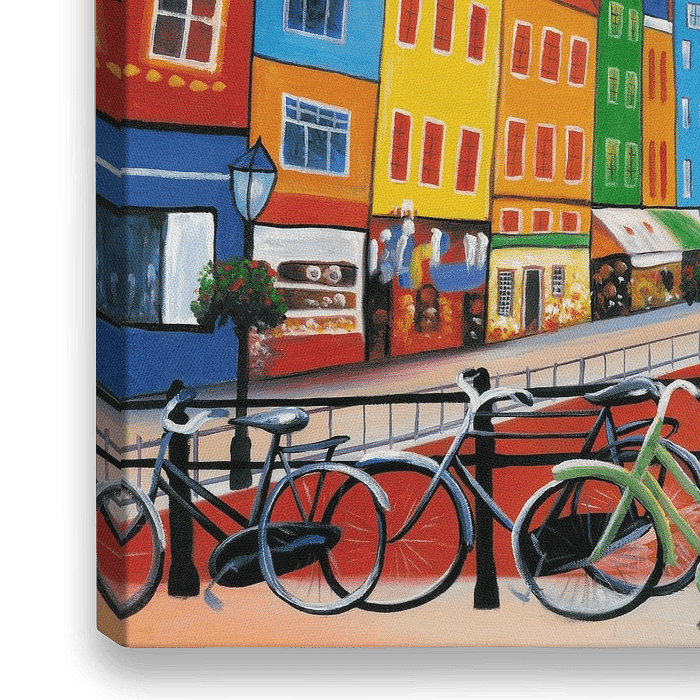 Paysage urbain coloré : Utrecht avec la tour Dom. La garantie de vous rendre heureux ! Les coups de pinceau sont magnifiquement visibles, même lorsqu'ils sont imprimés sur toile ou sur aluminium. Vous recherchez une version peinte de ce tableau ou d'une autre vue de ville ? Consultez ensuite le site web de la société Kunst…