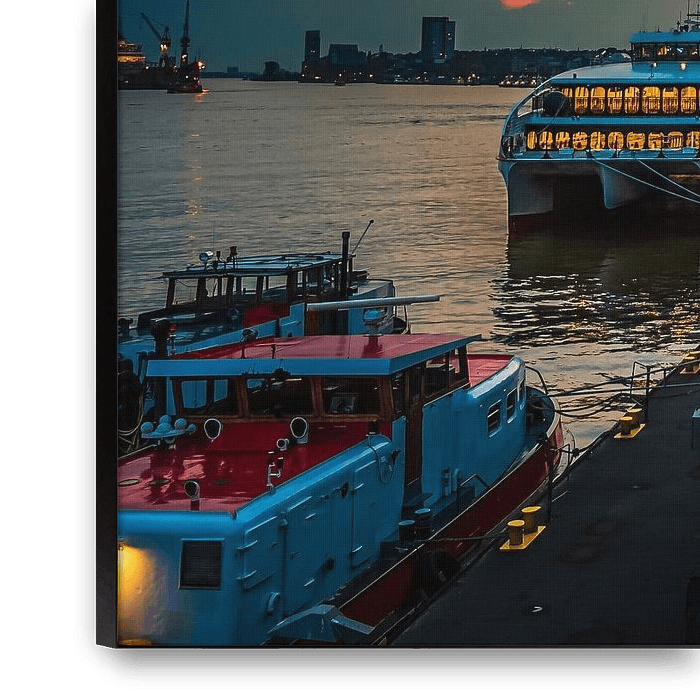 Achetez cette photo Port de Hambourg avec coucher de soleil par Mustafa Kurnaz sur toile, aluminium, ArtFrame ou photographie (encadrée), impression d'art en haute qualité et tout format.