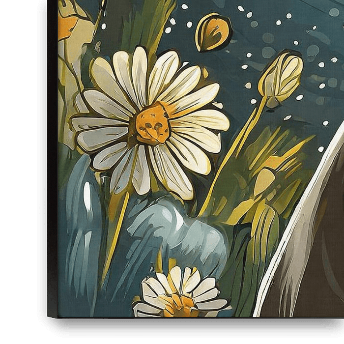 Votre art choisi sur toile, tendu dans un cadre en aluminium. Rapide et facile à changer pour un look frais et exactement comme vous le souhaitez.