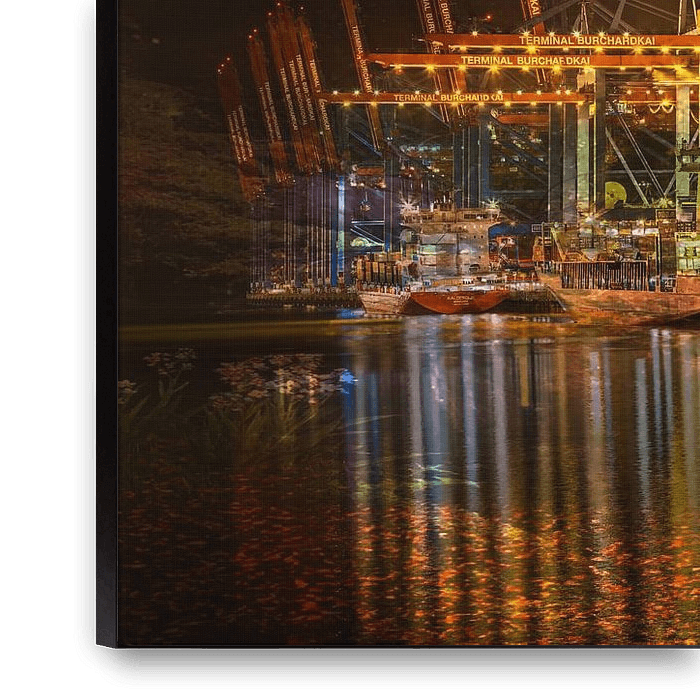La nuit, des lumières brillent pour vous au Burchardkai de Waltershof. Média mix