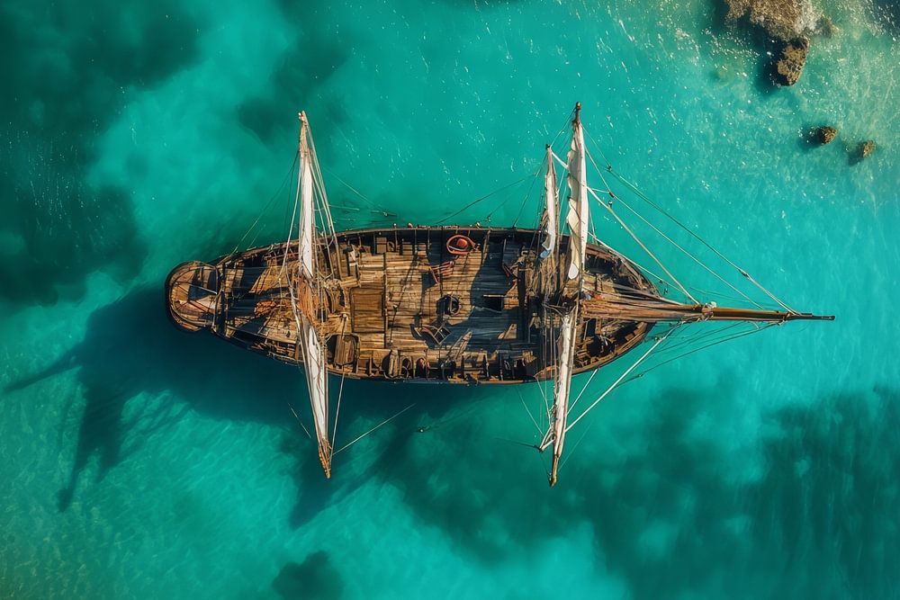 Un bateau pirate abandonné, datant d'une époque révolue, gît dans une mer bleue et limpide. La coque en bois est patinée par le soleil, le sel et des années d'aventure. Les vagues frappent doucement les flancs du navire, qui n'est plus qu'un témoin silencieux de voyages imprudents. Là où les pirates couraient autrefois sur le pont, on…