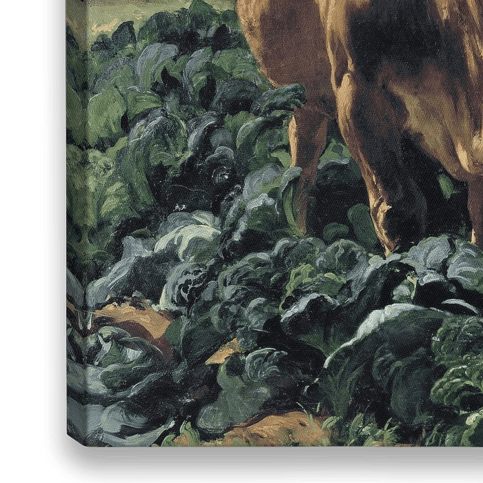 Achetez Vache dans un champ de choux, Rudolf Koller en tant que reproduction sur toile, aluminium, ArtFrame ou photographie (encadrée), impression d'art en haute qualité et tout format
