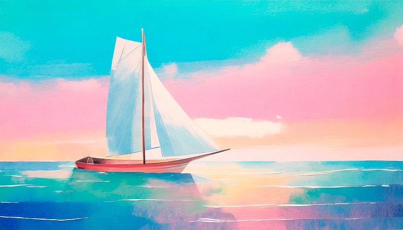 Acheter ce tableau Voilier avec coucher de soleil par Mustafa Kurnaz sur toile, aluminium, ArtFrame ou photographie (encadrée), impression d'art en haute qualité et tout format.