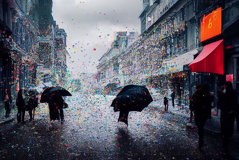 confettis colorés dans la rue, Art Illustration