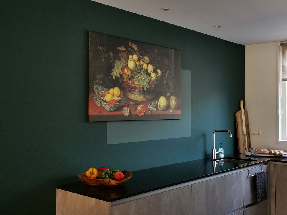 Les détails raffinés des natures mortes demandent une attention particulière. Accrochez votre œuvre à hauteur des yeux, environ 145-150 cm du sol jusqu'au centre de l'image, pour profiter pleinement des textures et des petits éléments. L'œuvre Pêches, prunes, oranges et autres fruits dans un vase en étain, Balthasar van der Ast révèle toute sa richesse à cette hauteur.