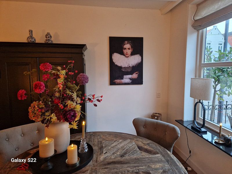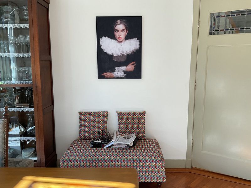 Les Collerettes prennent vie sur chacun de nos supports. Que vous choisissiez la Toile, le Poster ou l'Acryl, chaque matériau met en valeur les détails raffinés et les couleurs douces de cette collection historique.