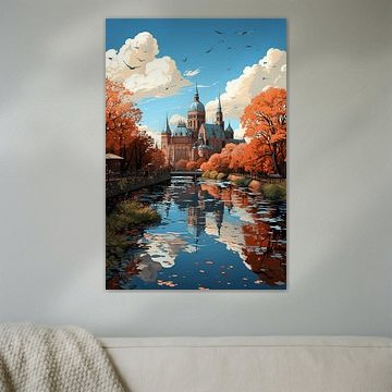 • Photo de nos clients: L'œuvre colorée du Vrijthof Maastricht : La basilique Saint-Servatius et l'église Saint-Jean par Slimme Kunst.nl, sur ArtFrame