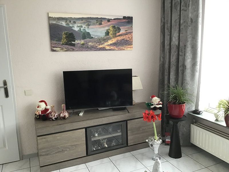 Les œuvres de la collection Posbank sont particulièrement appréciées en format paysage, idéal pour capter l'étendue des paysages de bruyère et la lumière douce des levers de soleil. Ce format horizontal convient bien au-dessus d'un canapé, d'une commode ou d'un lit, où il structure l'espace sans le surcharger. Vous pouvez aussi opter pour un format carré si vous souhaitez créer une composition symétrique sur un mur étroit. Le format debout fonctionne dans un couloir ou à côté d'une porte, là où la hauteur met en valeur les détails.