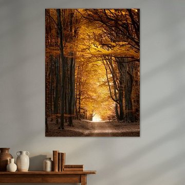 • Photo de nos clients: Lumière du soleil dans la forêt d'automne  par Fotografie Egmond, sur toile