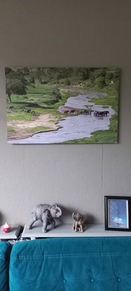 Les scènes de savane fonctionnent particulièrement bien dans les espaces de vie ouverts, où leurs horizons larges créent une sensation d'espace. Placez Les gnous lors de la grande migration en Tanzanie face à un canapé ou dans un couloir lumineux pour profiter pleinement des détails et des reflets dans l'eau.