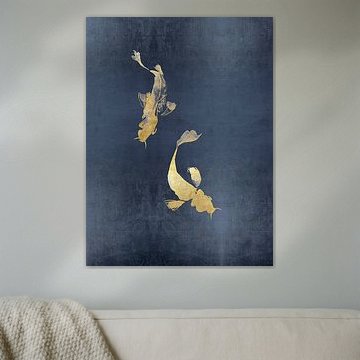Poissons Koi I minimaliste et moderne I bleu or par Atelier UNBUNT