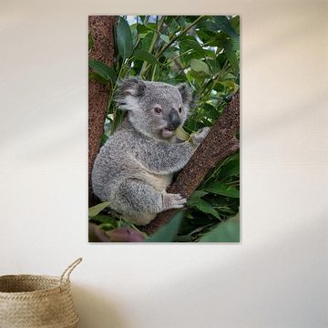 Koala (Phascolarctos cinereus) lionceau de 11 mois assis dans un arbre, Australie par Nature in Stock